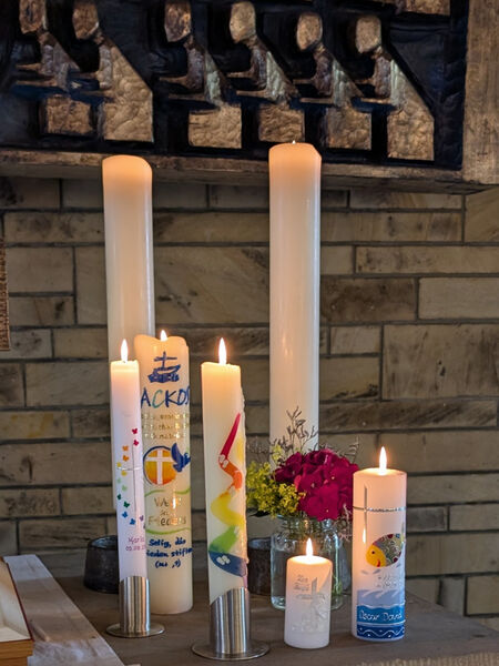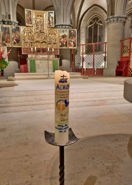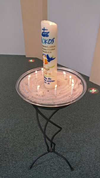 Jede Gemeinde erstellt ein Foto von der brennenden Kerze im Gottesdienst. Mit den Aufnahmen entsteht auf dieser Seite eine stetig wachsende Bildergalerie. Nach einem Jahr soll die Kerze am 25. Oktober 2025 wieder im Friedensgottesdienst brennen.