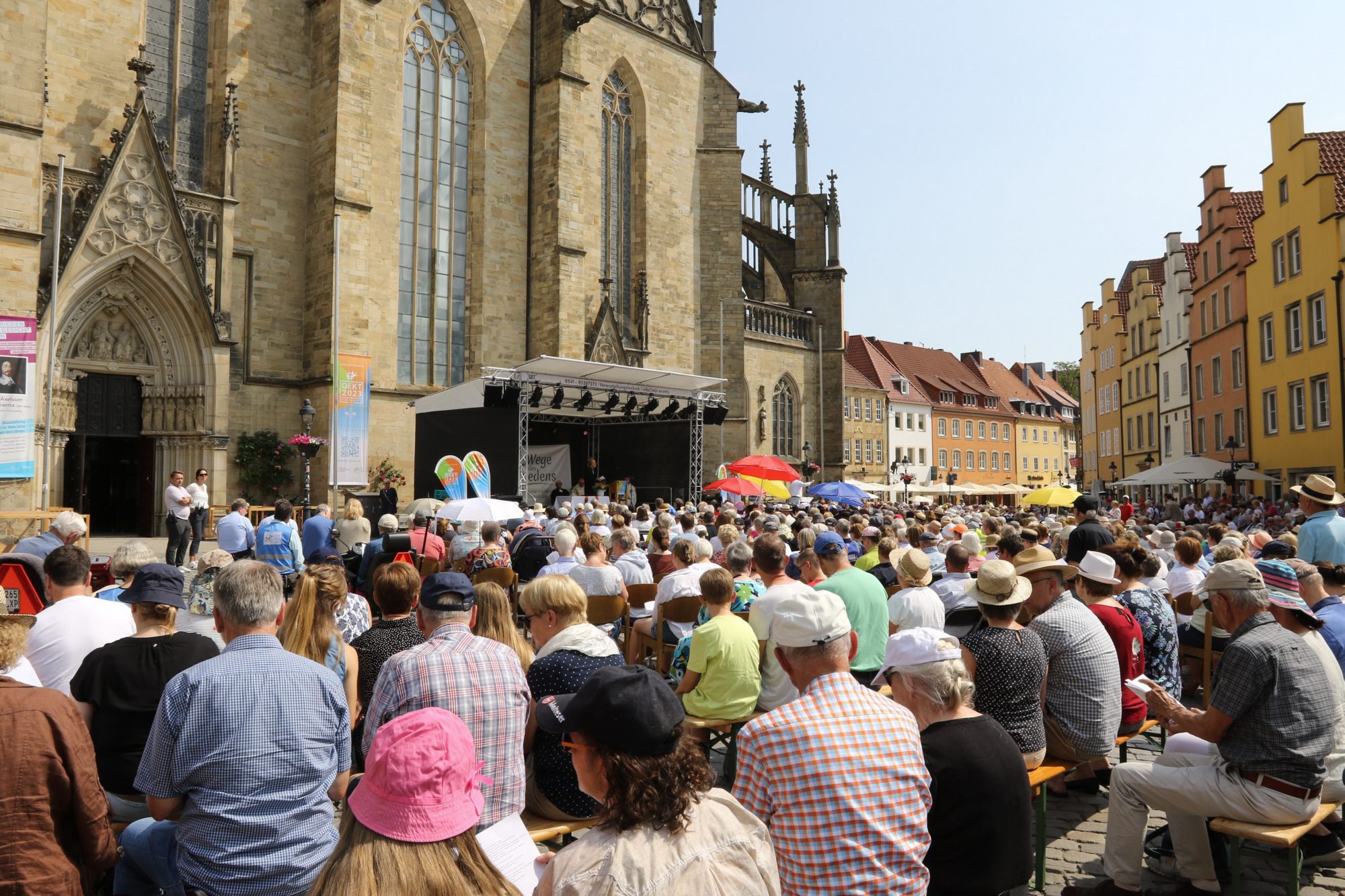 Über 1.300 Menschen waren als Mitwirkende und Helfer:innen an den drei Tagen mit Programm im Einsatz. Etwa 15.000 Teilnehmende wurden gezählt bei der Langen Nacht der Kirchen am Freitag und dem Kirchentags-Samstag. Circa 1.500 Menschen feierten den Abschlussgottesdienst auf dem Platz zwischen dem historischen Rathaus in Osnabrück und der St.-Marien-Kirche mit, als 90 Bläser:innen eines Projekt-Posaunenchors mit den eigens für den Kirchentag gedichteten Liedern den Wunsch nach Frieden lautstark einforderten.