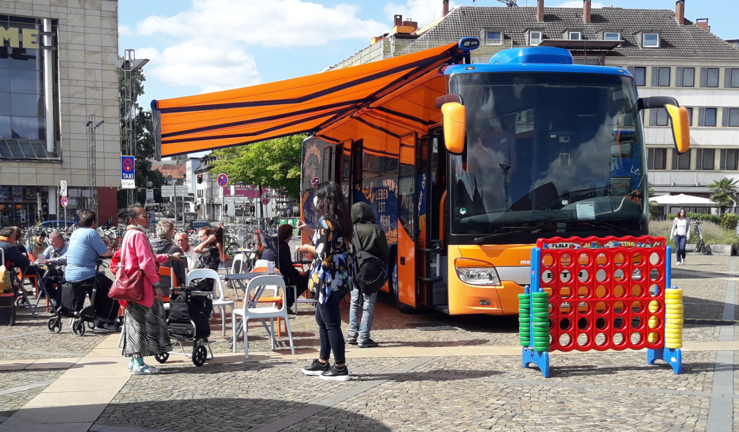 Als Christen aus Osnabrück und dem Landkreis möchten wir zum elften Mal mit Menschen über das Leben und die beste Nachricht der Welt ins Gespräch kommen. Wir haben wieder den Mobilen Treffpunkt (MobiTreff) der Barmer Zeltmission e.V. einladen können – ein zum rollenden Straßencafé ausgebauter Reisebus. Dort können wir gratis Kaffee, Cappuccino, Tee und Kaltgetränke anbieten und dabei mit Passanten über das Leben und über Jesus ins Gespräch kommen.